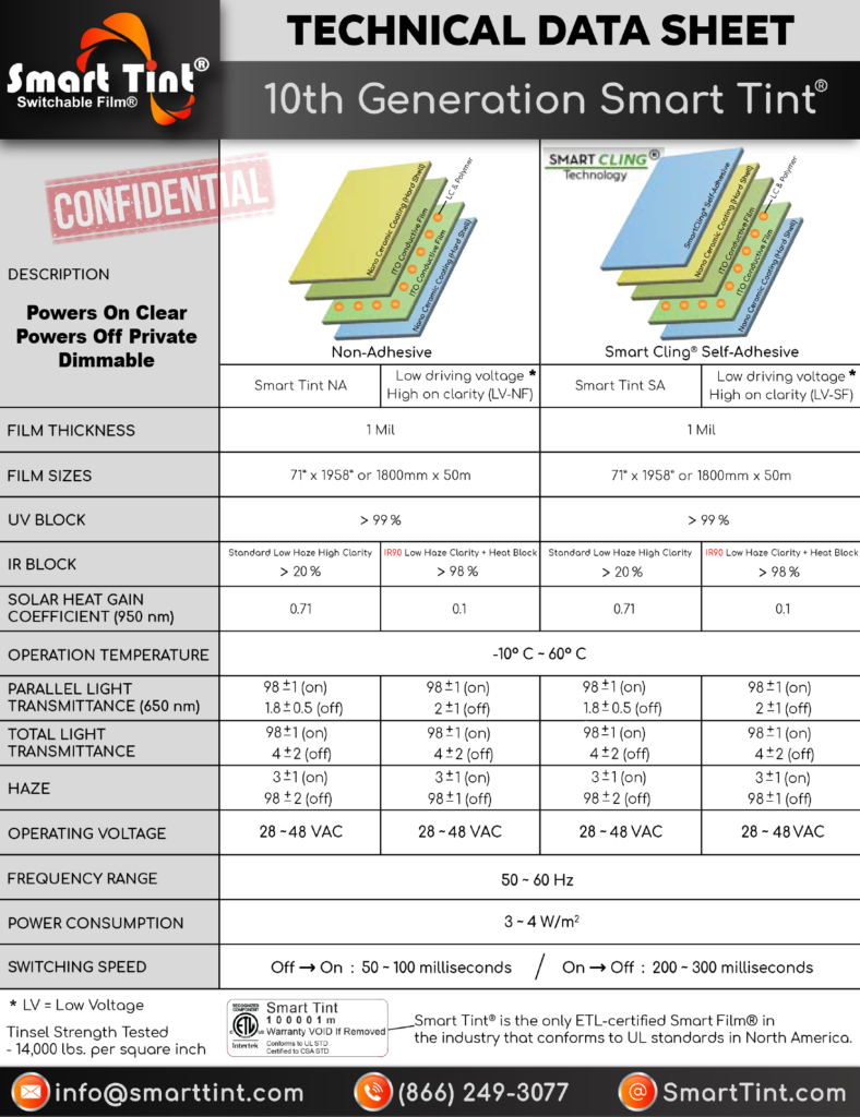 - Only Genuine Smart Tint® Is ETL Listed & UL Complaint for both North America and Canada.